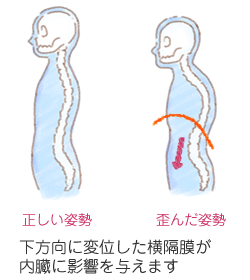 横隔膜が通常の位置より下がると、内臓全体を圧迫し、内臓本来が持っている機能を発揮できなくなります。